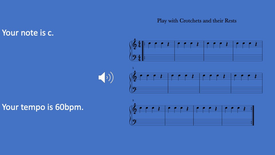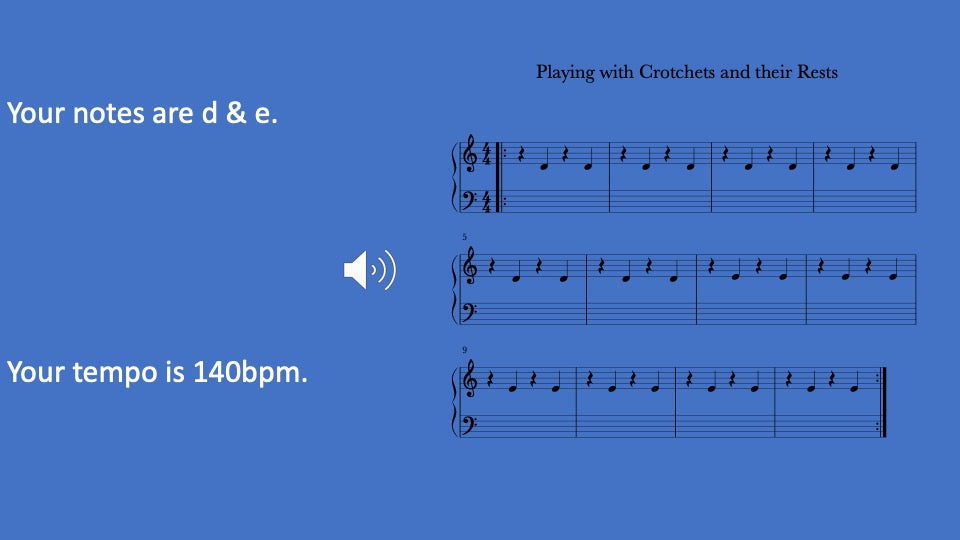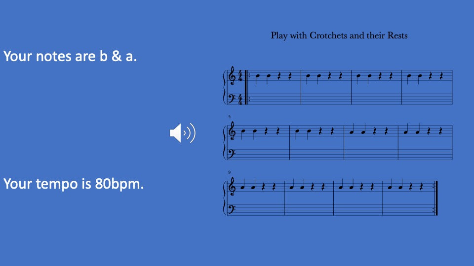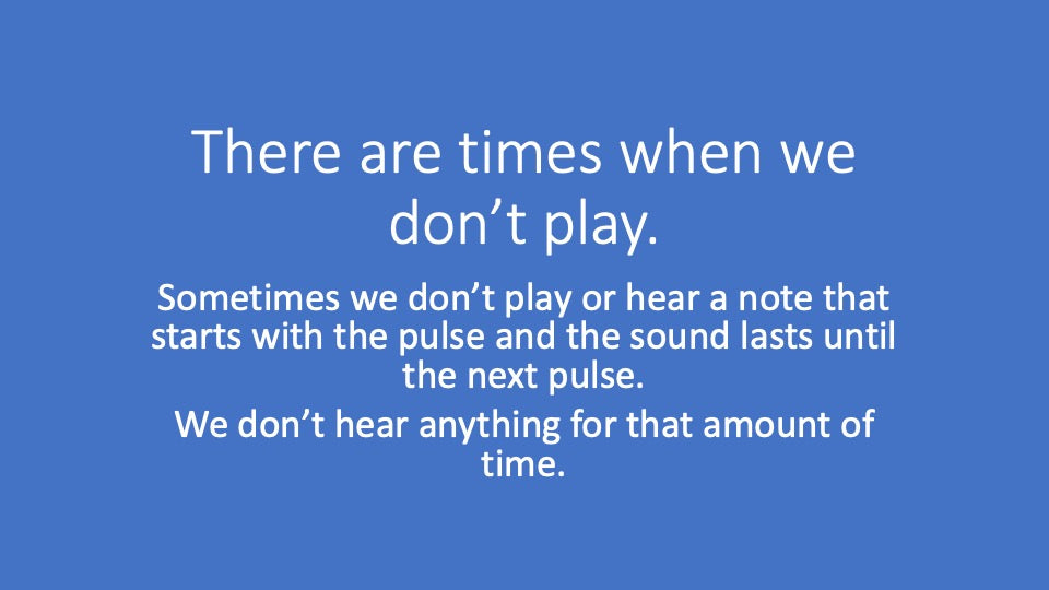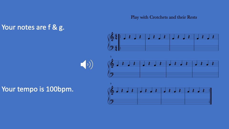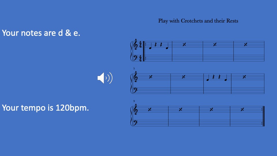 Practice resting and playing one beat notes with varying pitches and guided by musical tracks. Includes video, audio, written music, and 5 activities to improve technique and playing skills.