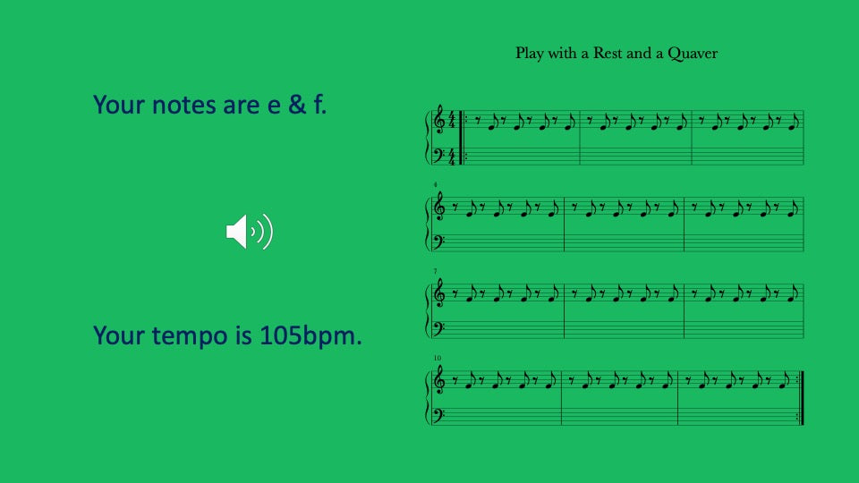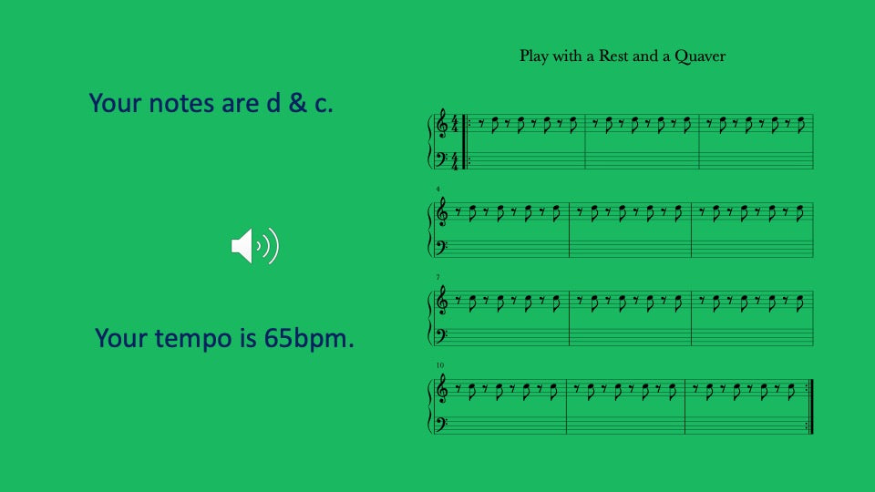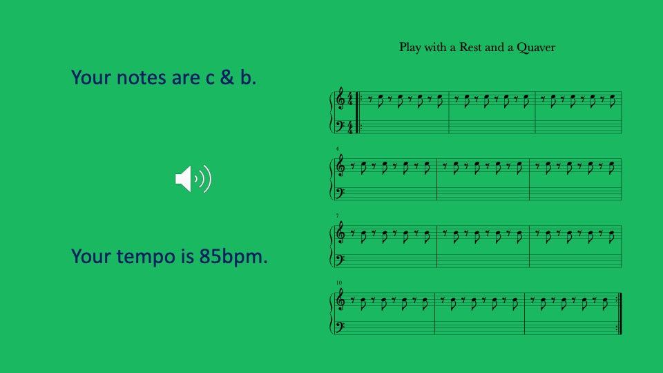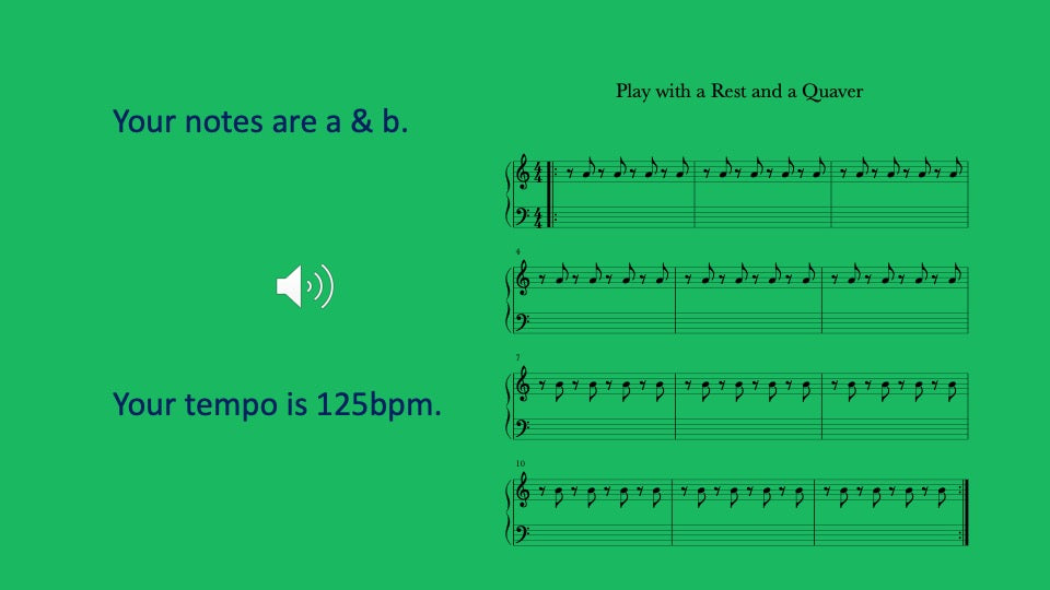 Play half beat notes and practise resting for only the half a beat with musical tracks guiding you.