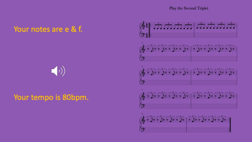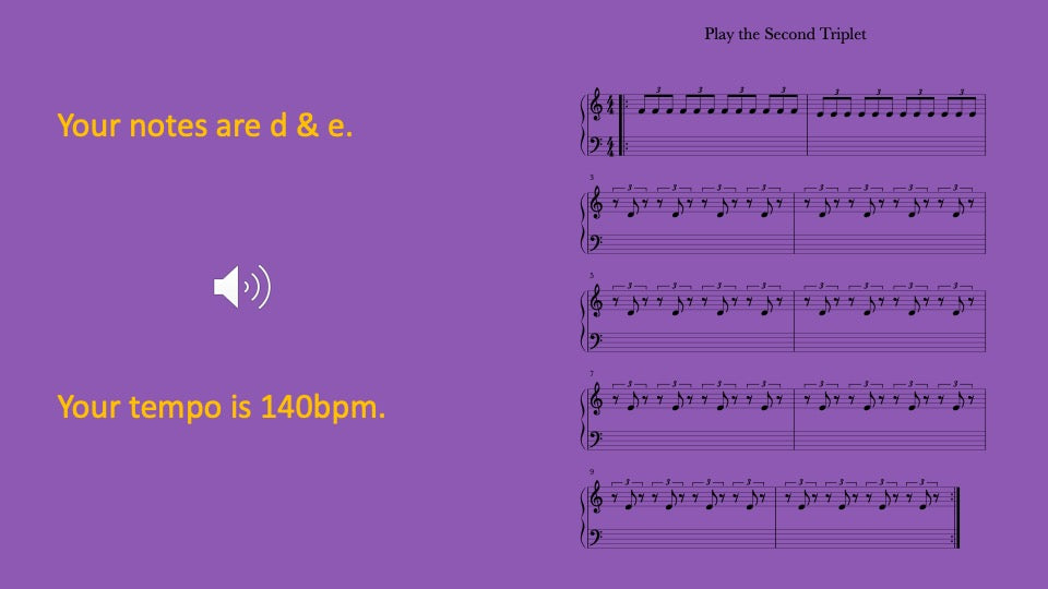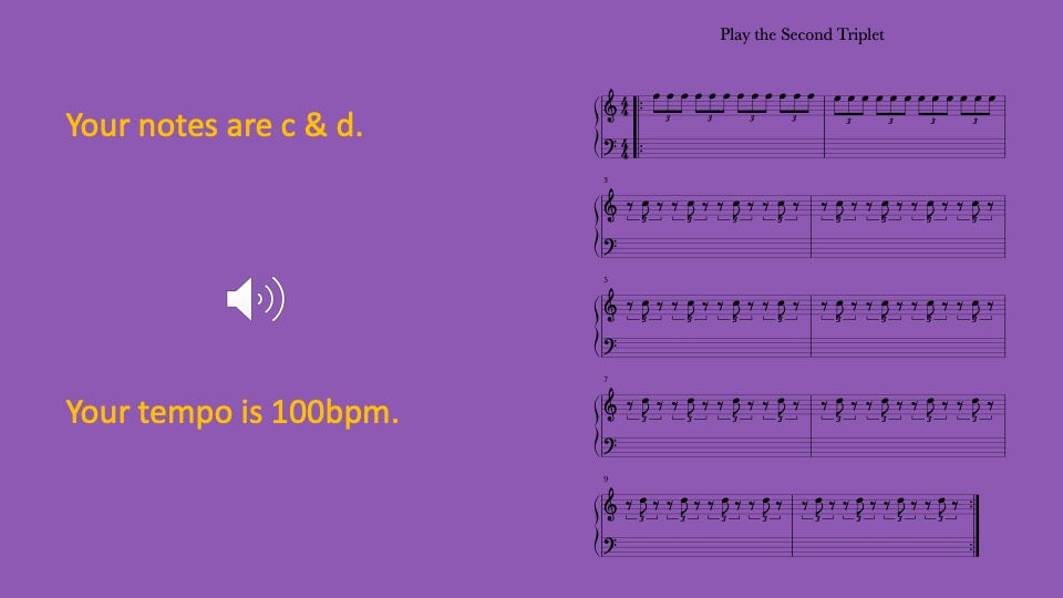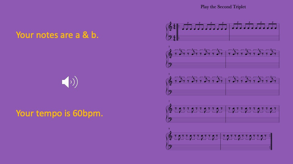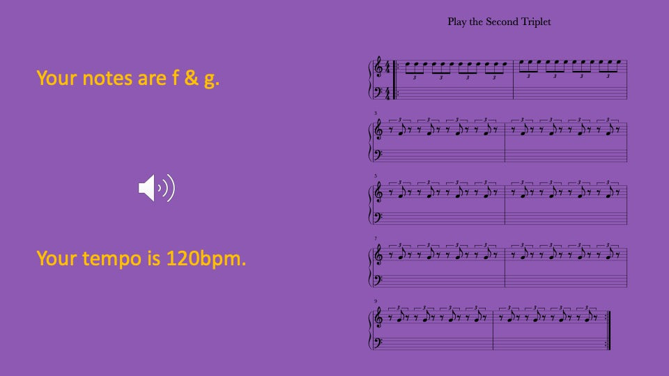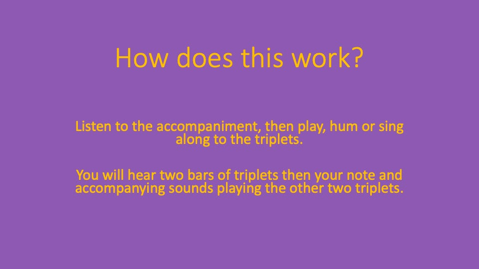 Listen for a rest, play a triplet then listen for a rest with musical tracks guiding you.