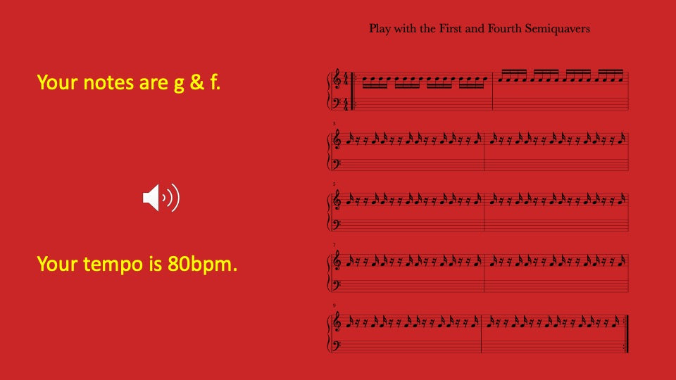 Play one semiquaver, rest two then play a semiquaver with musical tracks guiding you.