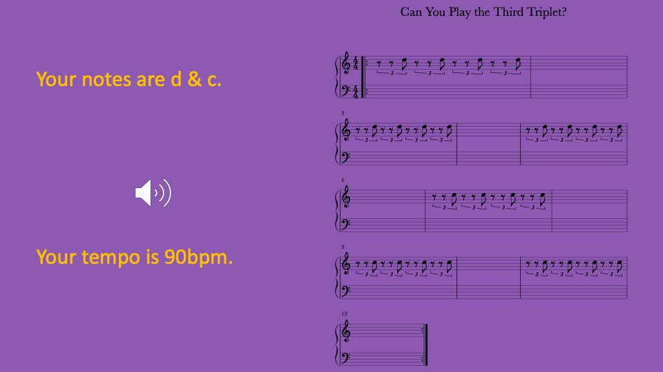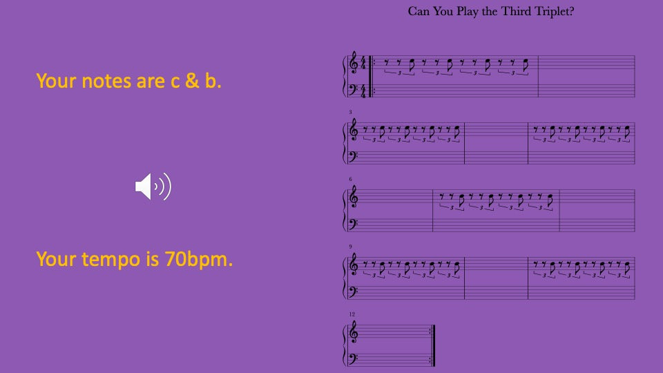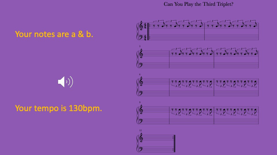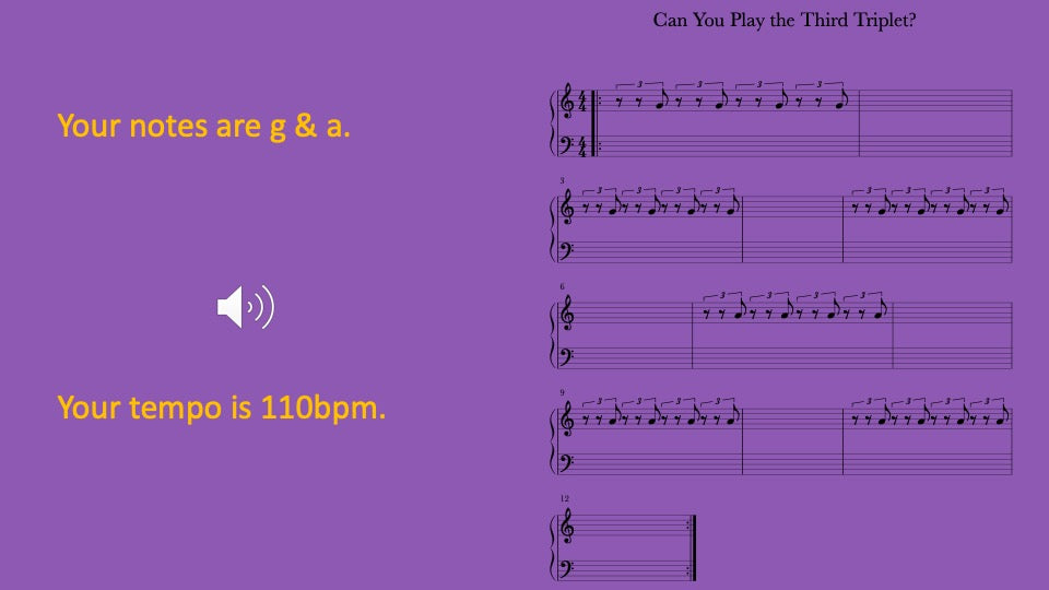 Rest for two triplets then play one triplet with musical tracks guiding you to play together and on your own for a better understanding.